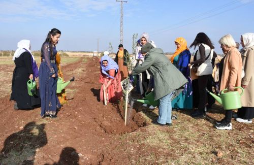 Etkinlik kapsamında kadınlar, diktikleri fidanları toprakla buluşturdu ve can suyu vererek geleceğe umut ekti.