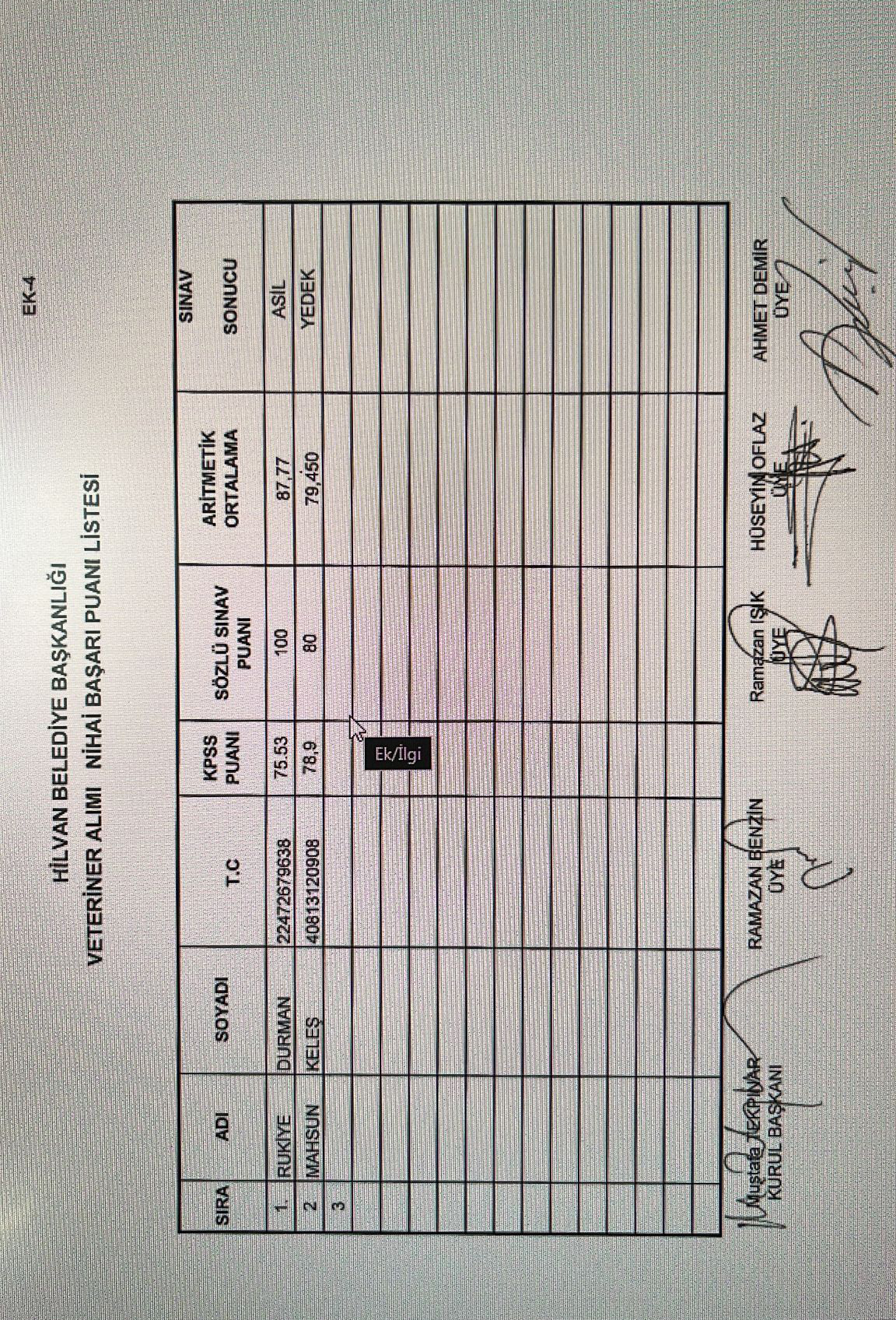 Sözlü Mülakat Nihai Liste