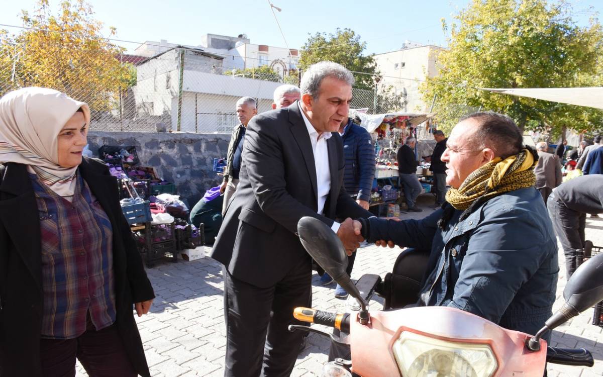 Hilvan Belediyesi Eş Başkanları Serhan Paydaş ve Garip Yeşil her hafta Cuma günleri kurulan Semt Pazarı esnafını ve alışverişe gelen vatandaşları ziyaret edip taleplerini dinledi.