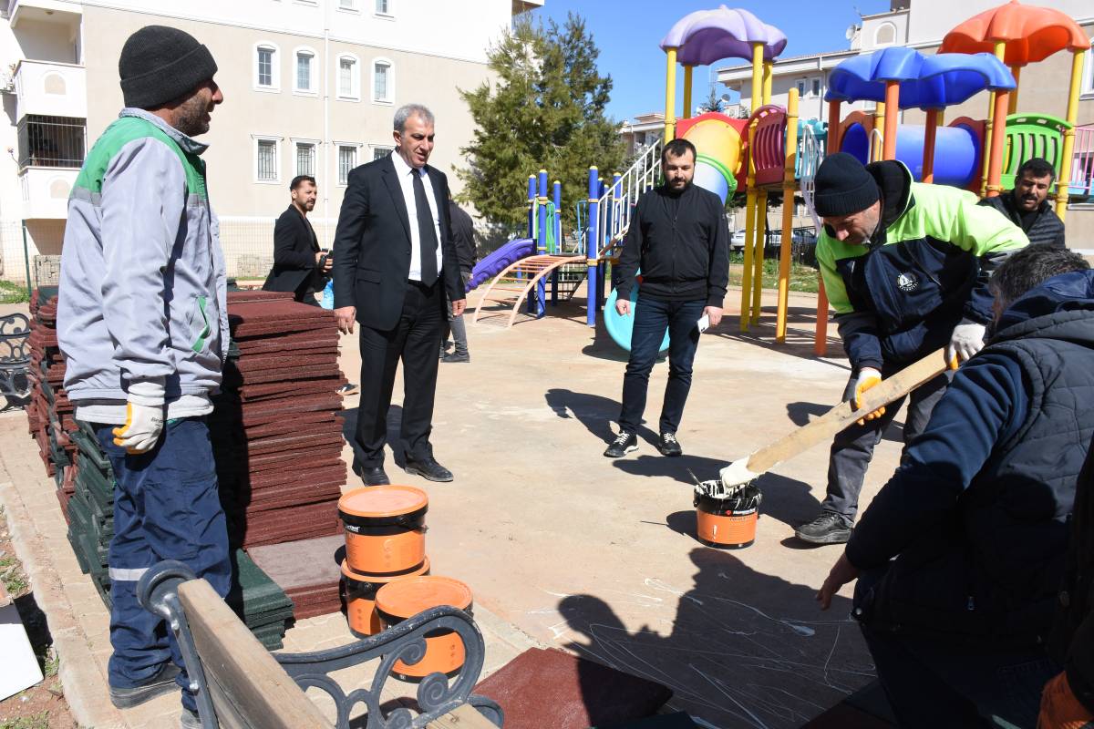 Hilvan Belediyesi Eşbaşkanı Serhan Paydaş da kent genelinde devam eden park yenileme çalışmalarını yerinde inceleyerek ekiplerden bilgi aldı.