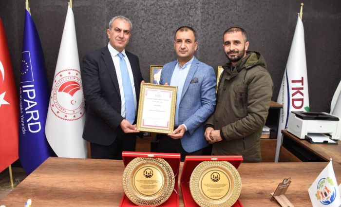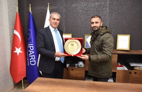 Bu önemli sürecin başarıyla tamamlanmasında emek ve katkılarıyla büyük rol oynayan Hilvan Yerel Eylem Grubu Koordinatörü Yusuf Yavuz ile Genel Sekreter Mesut Yetkin Hilvan Belediyesi Eşbaşkanı Serhan Paydaş tarafından ziyaret edildi. Gerçekleşen ziyarette coğrafi işaret tescil sürecine sunmuş oldukları değerli katkılardan dolayı Yavuz ve Yetkin’e plaket takdim edildi.