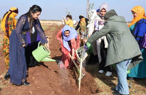 Etkinlik kapsamında kadınlar, diktikleri fidanları toprakla buluşturdu ve can suyu vererek geleceğe umut ekti.